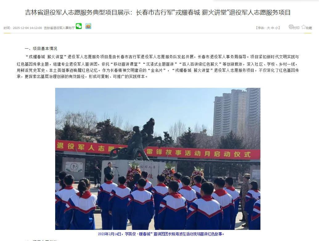 “烽火相传 志愿同行”吉林省退役军人志愿服务典型项目展播