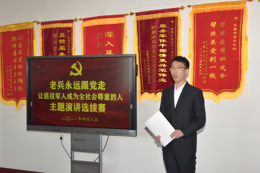 为全面贯彻习近平总书记关于开展党史学习教育的重要讲话精神,结合退役军人事务部及省退役军人事务厅做好“老兵永远跟党走”系列庆祝活动相关要求,着力从党的百年奋斗史中总结历史经验、传承红色基因、牢记初心使命,进一步弘扬党重视退役军人工作、关心退役军人的优良传统,引导退役军人增强“听党话、跟党走”的行动自觉,宣传退役军人工作在改革发展中砥砺奋进取得的丰硕成果,宣传退役军人一朝戎装在身、红心永远向党的精神风貌。4月8日上午,“老兵永远跟党走·让退役军人成为全社会尊重的人”主题演讲选拔赛在长春市退役军人事务局举行,局领导、局机关相关处室以及服务中心有关同志参加了本次活动。