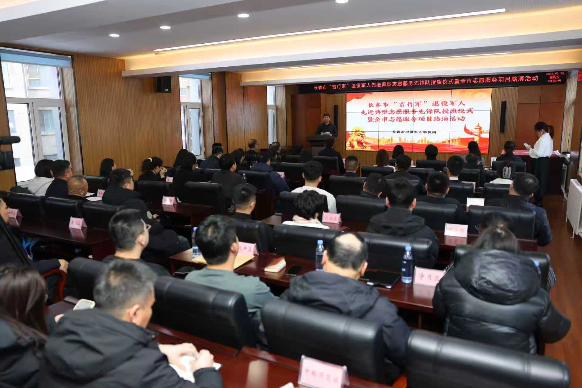 为了充分发挥退役军人先进典型志愿服务作用,展示项目化运行成果,推动退役军人志愿服务事业高质量发展。1月23日,长春市退役军人事务局组织开展以“戎耀春城·志愿同行”为主题的“吉行军”退役军人先进典型志愿服务先锋队授旗仪式暨全市志愿服务项目路演活动。