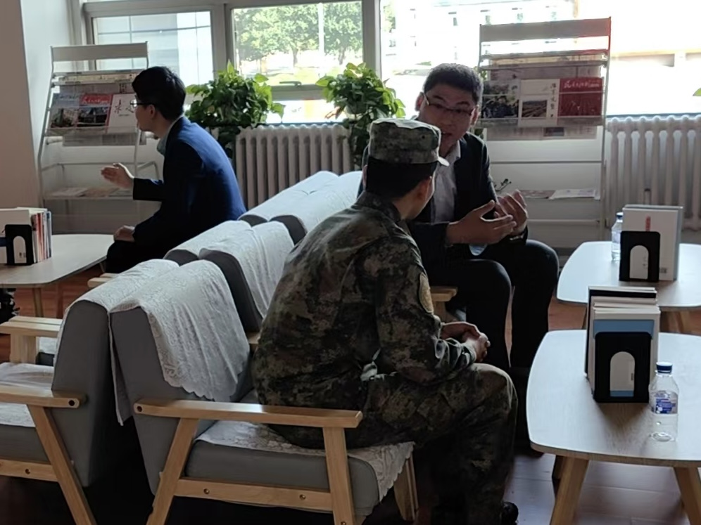 在卫生防疫科诊台前,众多参加义诊的人员被军医的讲解介绍吸引,大家认真学习卫生防疫知识和如何在生活中增强自我防护意识;中医科的医生专注地为退役军人诊脉,仔细询问日常身体状况并提出用药及诊疗建议。