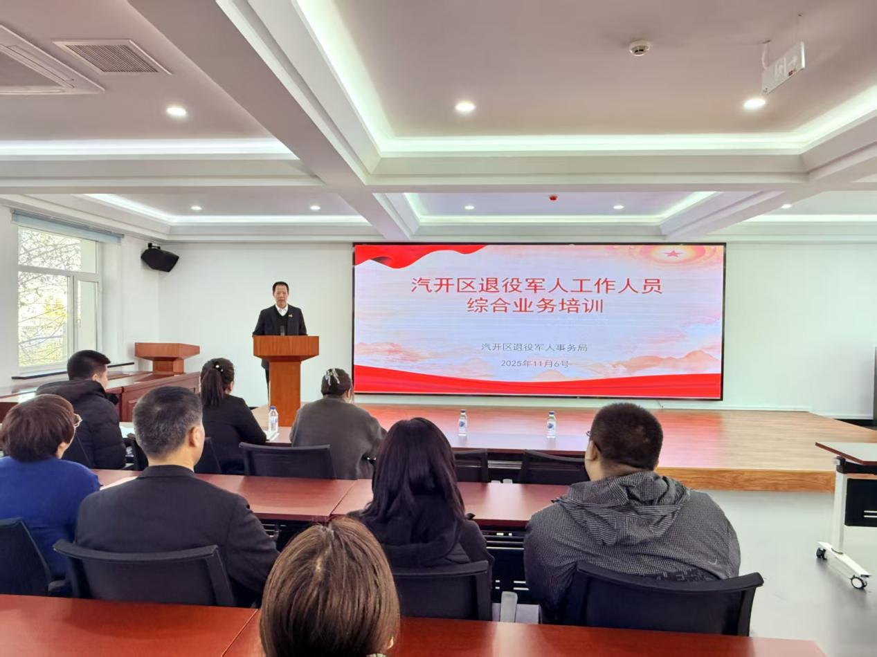 为进一步提升全区退役军人工作队伍的业务能力和服务水平,切实把退役军人工作做深做细做实,11月6日,汽开区退役军人事务局在锦绣街道举办2025年退役军人工作人员综合业务培训。局机关及服务中心全体人员,各街道、社区退役军人服务站工作人员近50人参加培训。