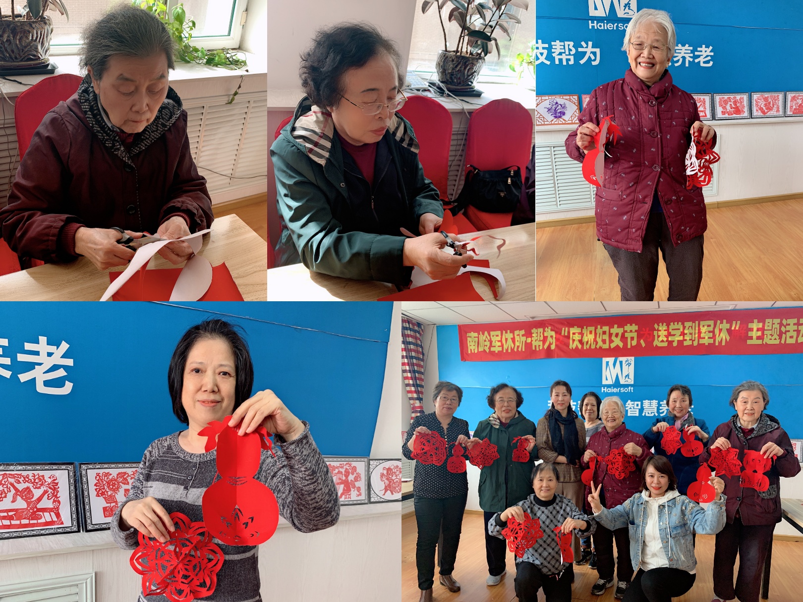 “军休课堂”在3月8日讲授第一课,到目前为止已经讲授8节,在休干中引起热烈的反响。在国画、书法课堂上,老师从源远流长的历史,讲到提笔落笔的技巧,休干们的绘画及书法在描摹、书写、请教老师,到互相切磋拿笔、运笔之间不断成长,活动室里弥漫着墨香,现场氛围十分融洽、愉快。而在剪纸、手工课堂中,一张张红纸,寥寥数剪,就可以剪成栩栩如生的图案,这种神奇的变换,一下子提起了老人们的兴趣,老师以猫和蝶的原型剪纸为案例说明了猫和蝶,有耄耋之意,寓意着长寿。休干们纷纷表示在军休课堂上不仅能够加强动手实践的能力,还学习到了丰富的知识,同时又能拉近彼此之间的距离,让许多军休干部从“邻居”变为“老友”。